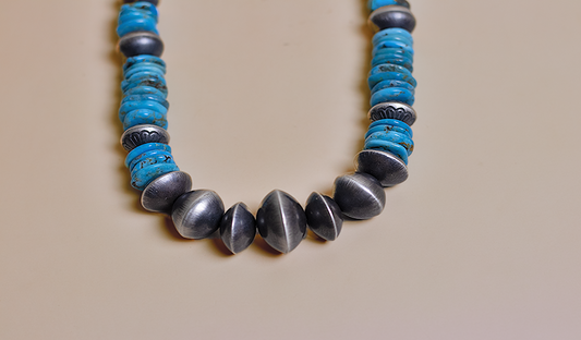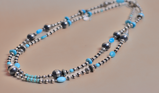 24" Sonoran Gold Turquoise and Silver Beaded Necklace