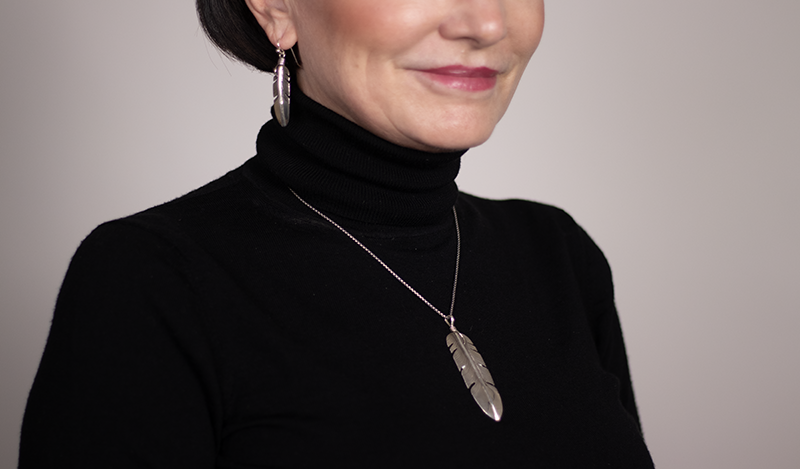 This handcrafted pendant features a traditional feather shape with a tapered end. The bail will accommodate up to a 2mm chain. The Navajo culture believes that the eagle is the strongest and bravest of birds and thus all feather designs on our jewelry are designed in the image of an eagle feather.